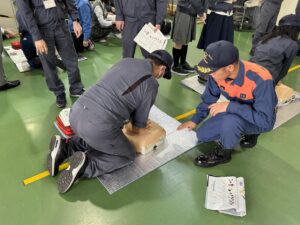 社員は講習の過程で隊員の皆様より救命のコツや注意点などを伝授いただき、最後は講習内容を通しで実践することで救命への理解を深めていました。
